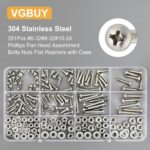 Machine Screws with Washers Nut:Our nuts and bolts assortment kit is made of premium 304 stainless steel, rust, corrosion and oxidation resistance.screw thread with no offset,no residual burrs,the perfect partner for your work, A constant tool kit for home, each screw with matching stainless steel nuts and washers