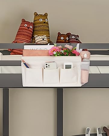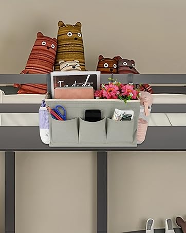 【Wide Application】Keep your items close to you for convenient access. The bunk bed storage caddy stores all your belongings together, such as laptop, mobile phones, books, water bottles, data cables, etc; Suitable for home school dorm bunk beds, hospital bed rails, crib rails or camping.