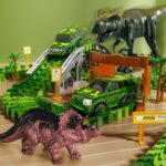 Dinosaur Car Racing Games- This race track toy allowing kids to set up any kind of race or story they desire, whether playing indoors or outdoors, suitable for kids aged 3-8 with families and friends, it can promote collaboration and lasting connections. Children who are dinosaur lovers or fans will be thrilled with this race car track!