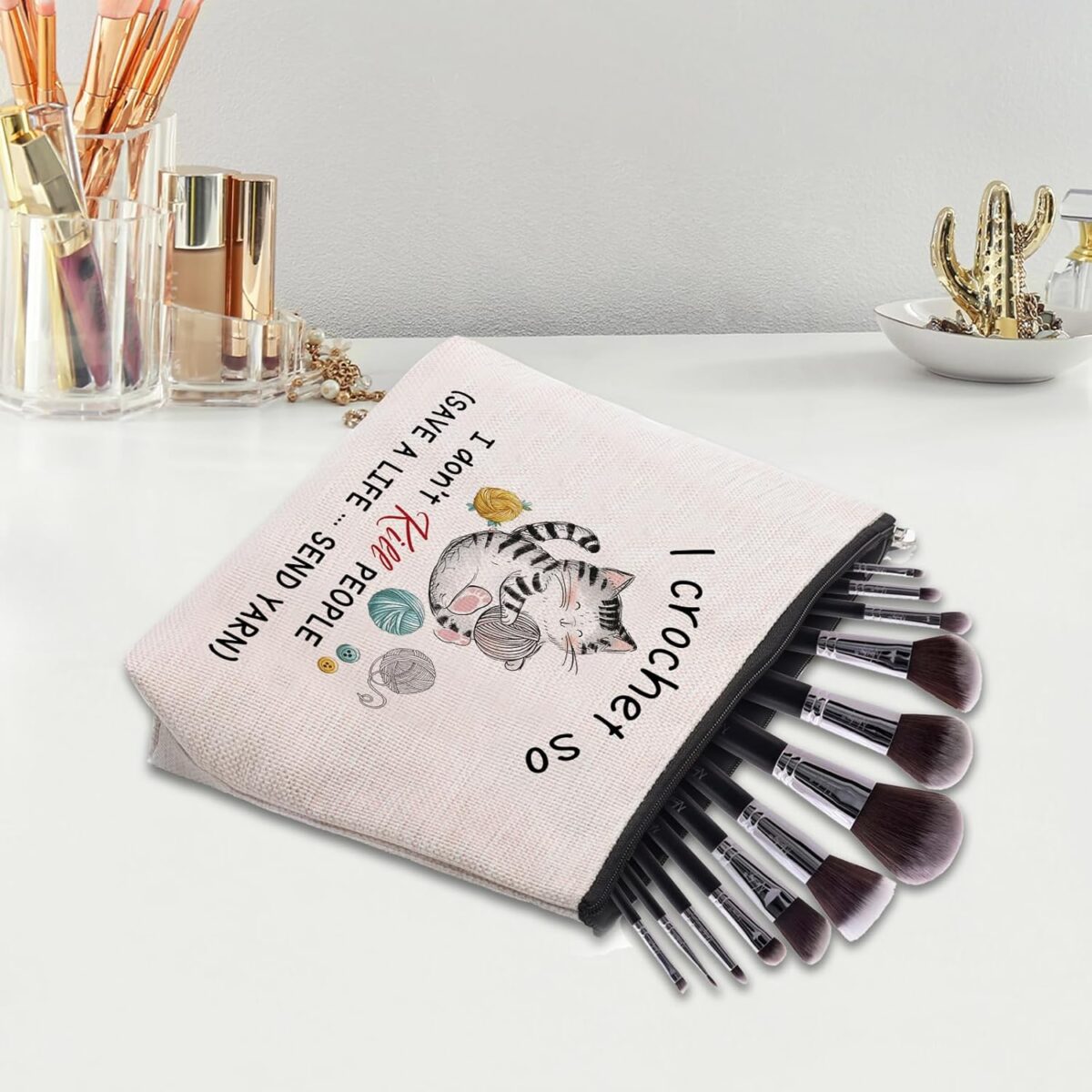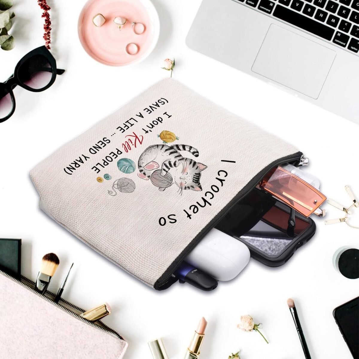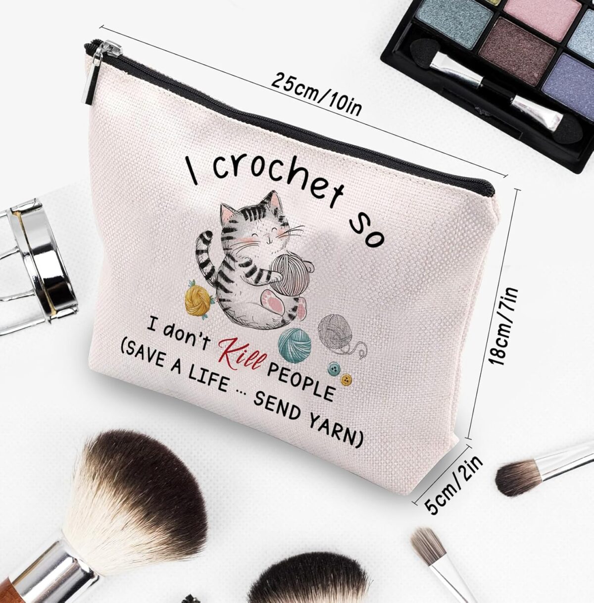 Crocheting Gifts for Crocheters Accessories Makeup Bag, Gifts for People Who Like crocheting, Crocheter Knitting Supplies Stuff Things Gadgets, Small Crochet Gift Bag Cosmetic Bag Pouch