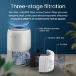 Breathe Pure, Live Pure – Experience the luxury of pristine air with our advanced 3-layer filtration system: High Efficiency Activated Carbon Filter, H13 True HEPA Filter, and Pre-Filter. Eliminate allergens, dust, and odors effortlessly, creating a sanctuary of purity for ultimate serenity.
