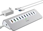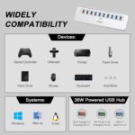 Powerful 30W Power Adapter: The powered usb hub With a 30W (12V/2.5A) power adapter, our ensures a stable data transfer and supplies sufficient power for all connected devices. The 10 port usb hub can protect your devices from overload, over-voltage, over-current, short circuit and overcharge, ensuring your safety and efficiency with the built-in surge protector design,ensuring that all usb ports can be connected to devices at the same time.