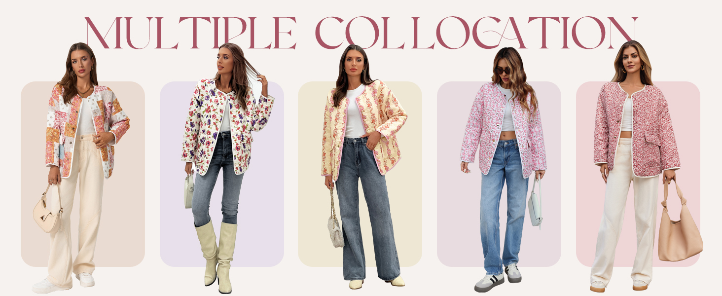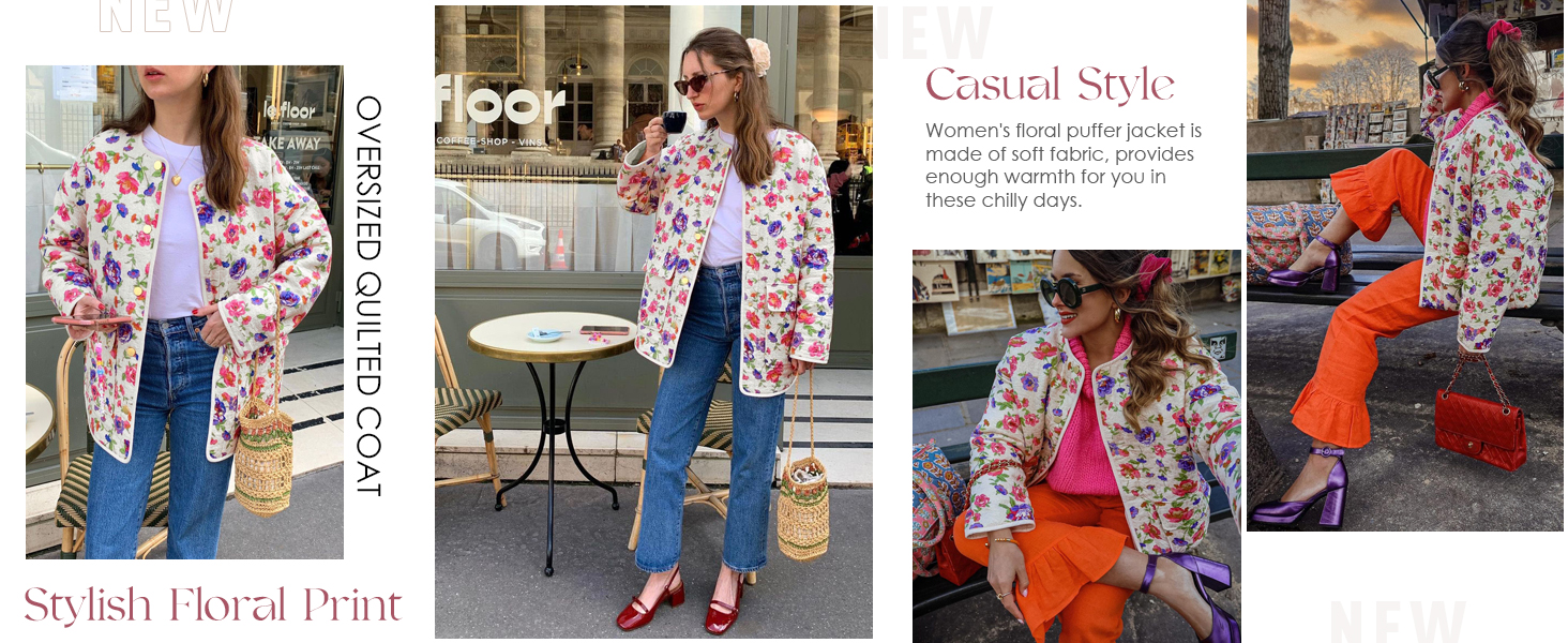 Tankaneo Womens Oversized Floral Quilted Jacket