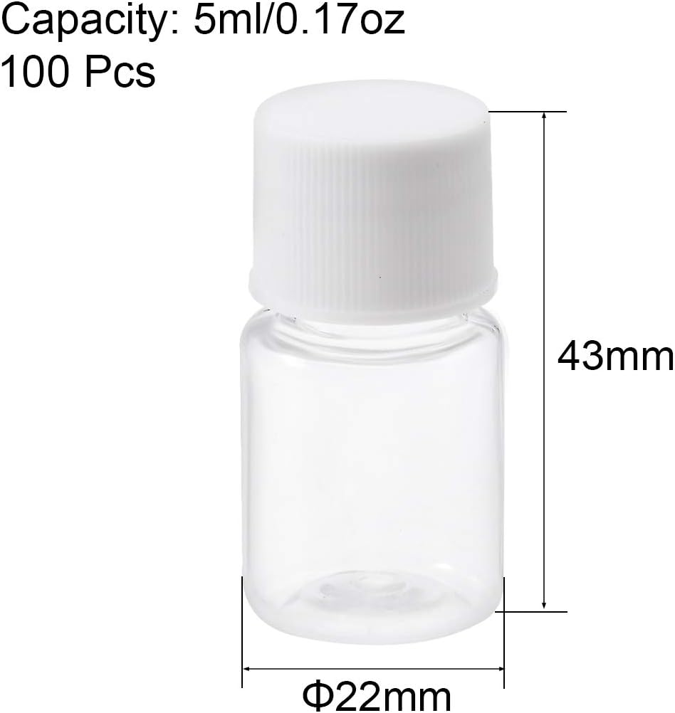 uxcell Plastic Lab Chemical Reagent Bottle, 5ml/0.17oz Wide Mouth Sample Sealing Liquid Storage Container, Transparent 100pcs
