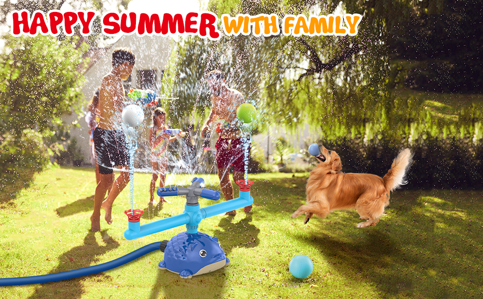 【Easy Installation in Just 10 Minutes】There are two ways to connect the ball water sprinkler: One is to directly attach the nut to a threaded garden hose (nut inner diameter: 0.59 inches / 1.5 cm); the other is to connect the included connector to the nut and then to a non-threaded hose (connector outer diameter: 1.06 inches / 2.7 cm). Easily switch nozzles to change the way you play, and adjust the water pressure to control the height or range of the spray.