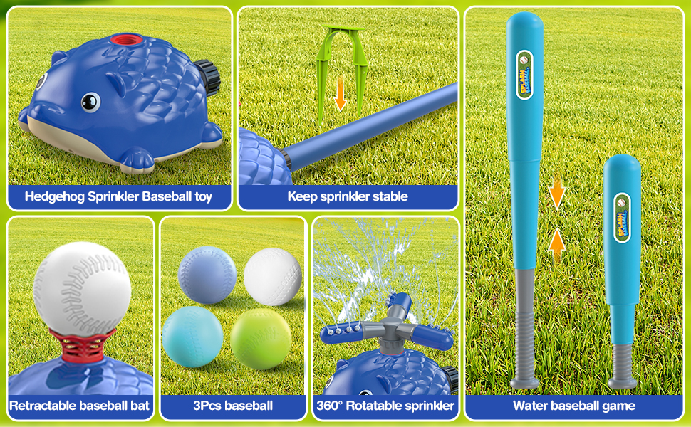 【Cool Summer Gift for Kids】Our water sprinkler baseball set is the ideal summer birthday and party gift for boys and girls aged 3-12. The unique and fun hedgehog design immediately captures children’s attention. Made from durable, high-quality materials with a smooth surface, it won’t irritate your child’s skin, ensuring a safe and enjoyable summer experience. It’s a great kids outdoor toys for birthday parties, summer camp, baseball practice, and backyard games for kids!