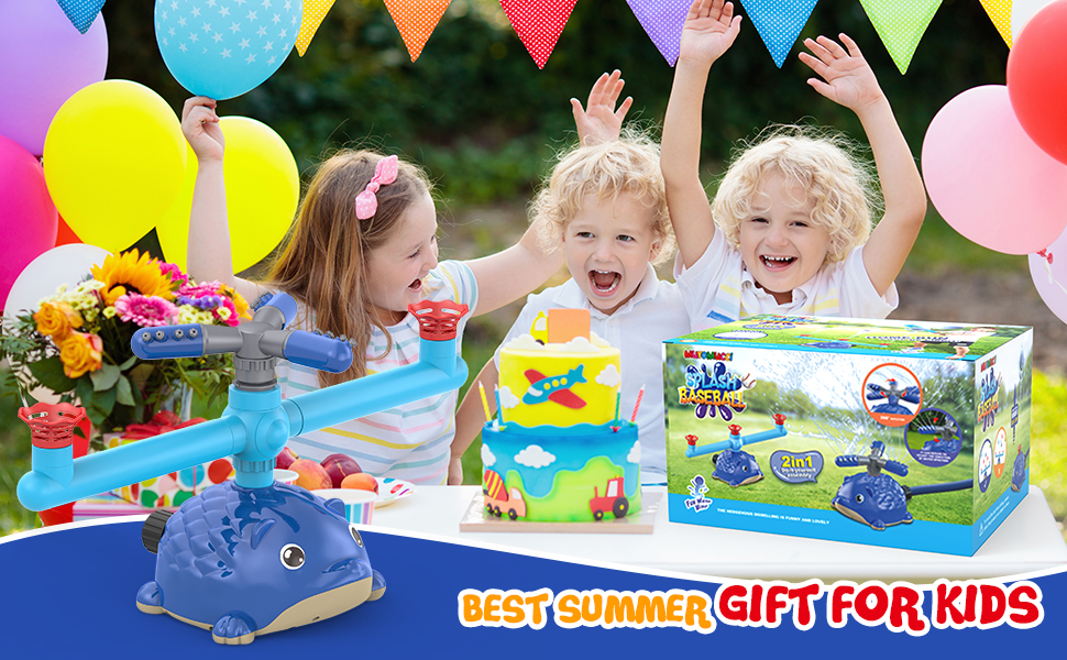 【Five Types of Fun in One Toy】Our 5-in-1 kids sprinklers for yard offers five ways to play. It features an upgraded triple water jet nozzle that can be used in conjunction with the included baseball. Also included is a fountain-style rotating nozzle that sprays a large area. The water jet nozzle and fountain nozzle can be combined or used separately. While you and your child have endless fun, this toy also helps develop their motor skills, batting techniques, and hand-eye coordination.