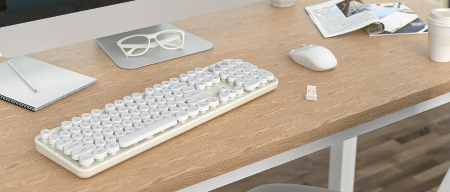【Full-Size Wireless Keyboard】With white round keys, the retro cute keyboard and mouse make your be distinctive in the office and work full of fun.